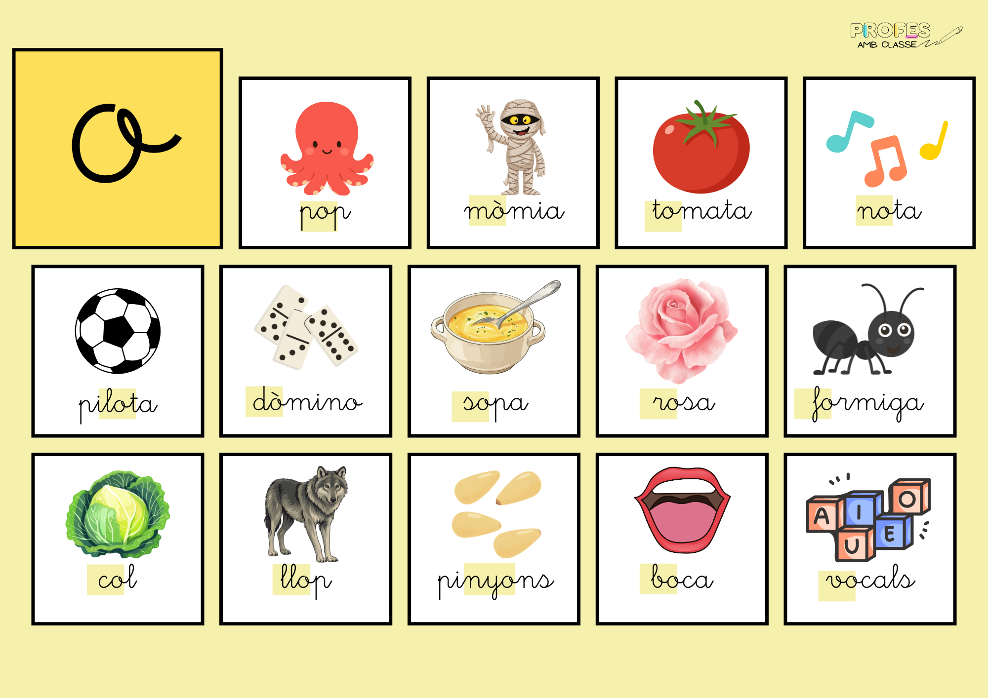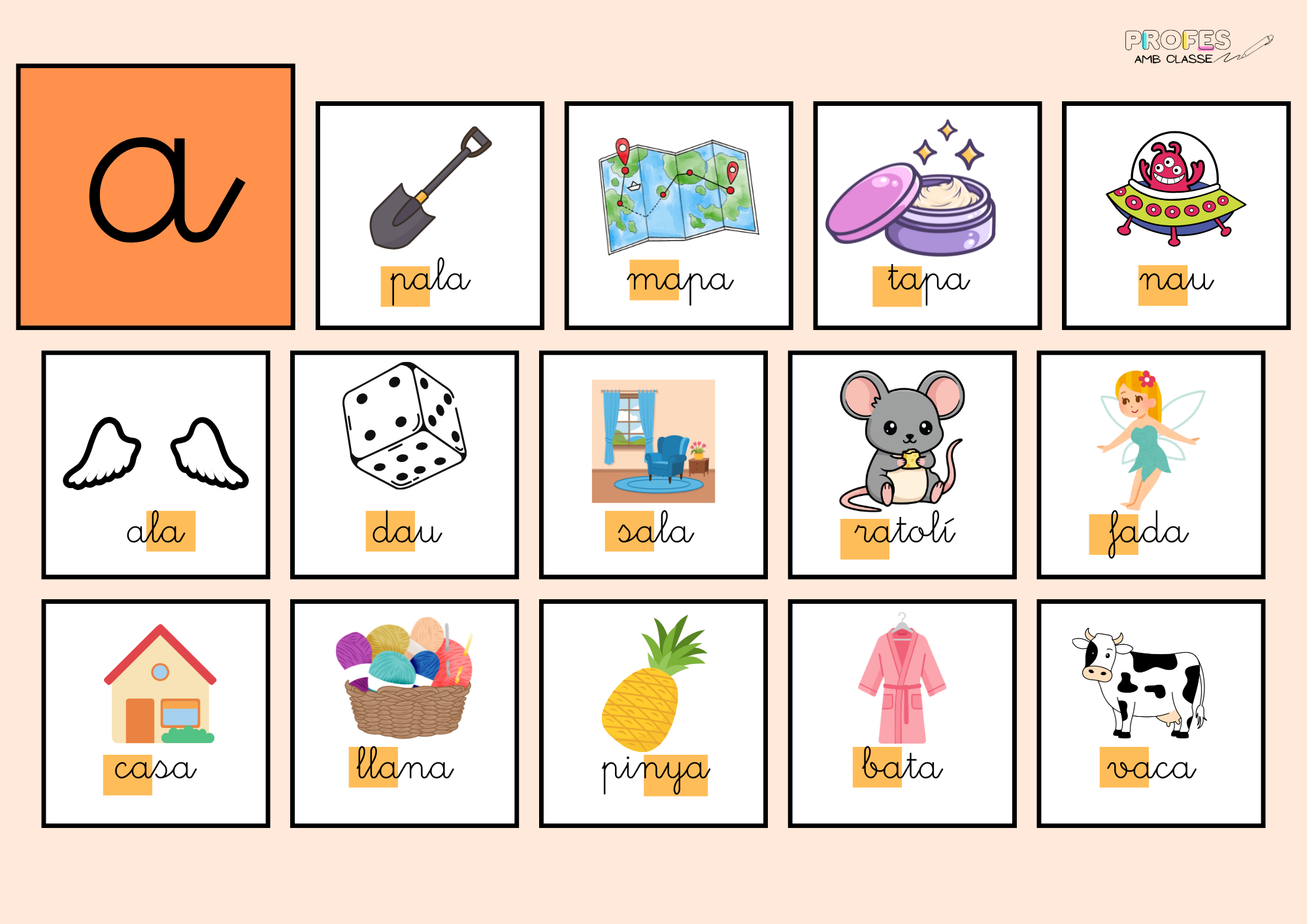 – Fitxes organitzades per vocals (a, e, i, o, u).