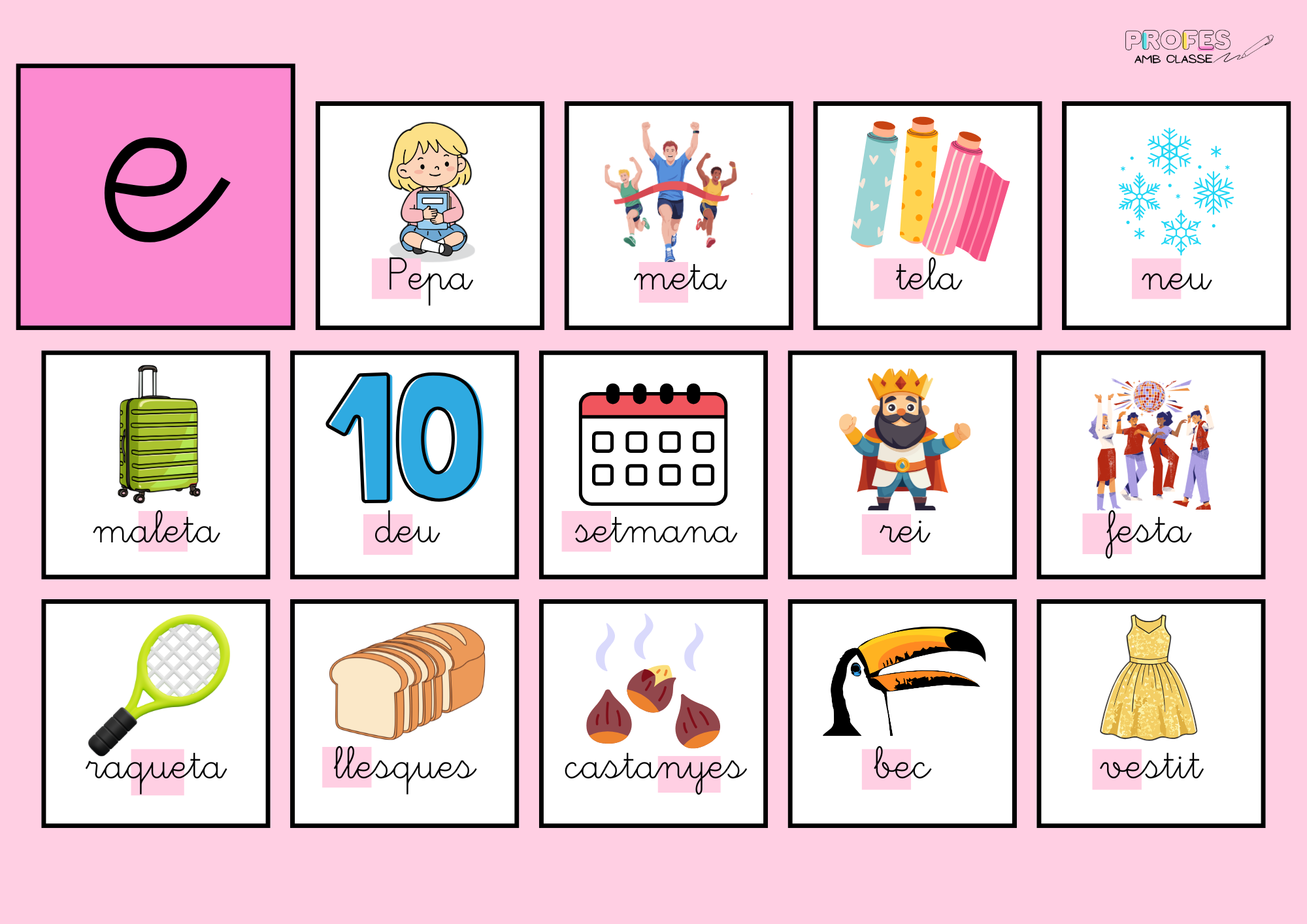 Aquest recurs està format per un conjunt de fitxes pensades per iniciar l’aprenentatge de la lectura i l’escriptura de manera progressiva, a partir del treball sistemàtic de les vocals amb les consonants. A cada pàgina, l’infant llegeix i escriu paraules senzilles que contenen una vocal concreta, amb suport visual i vocabulari proper i significatiu per construir el mètode sil·làbic de la lectura.