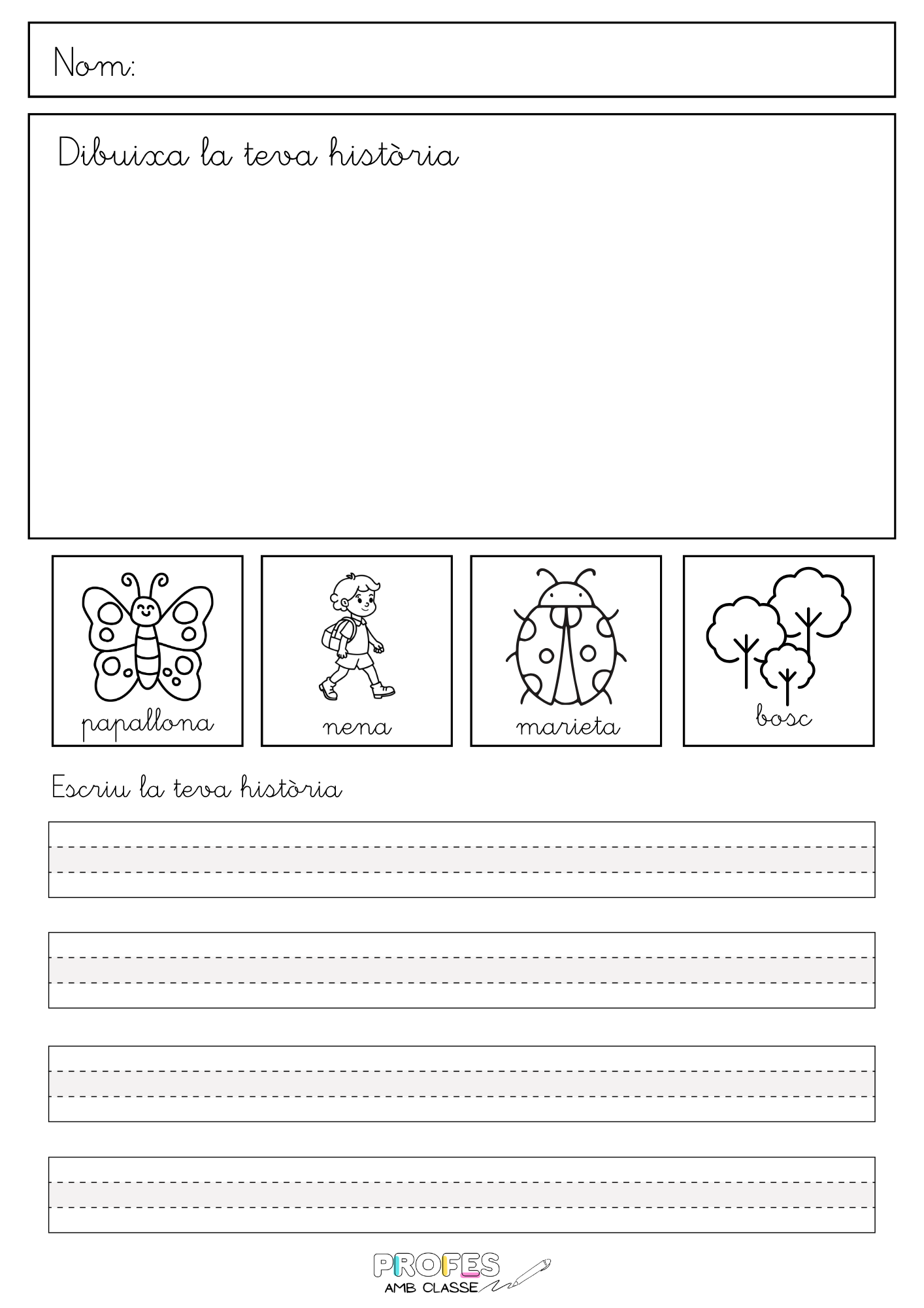 És un recurs perfecte per treballar l’expressió escrita de manera guiada però oberta, respectant el nivell de cada alumne i fomentant la creativitat a l’aula.